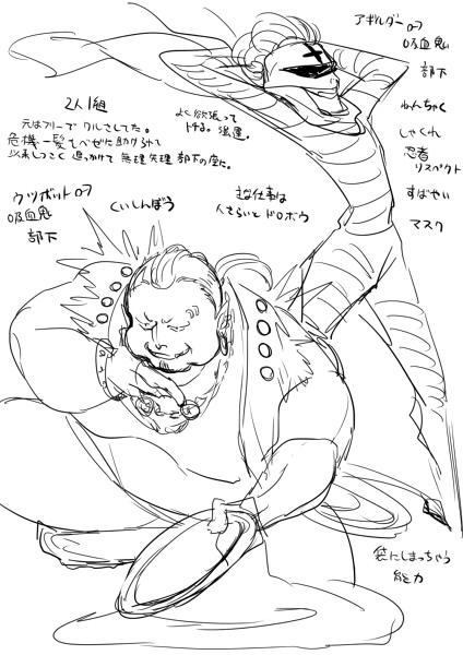 ベゼの部下たちや過去に関係のあった人物の設定やらラフやらを置くところ。
